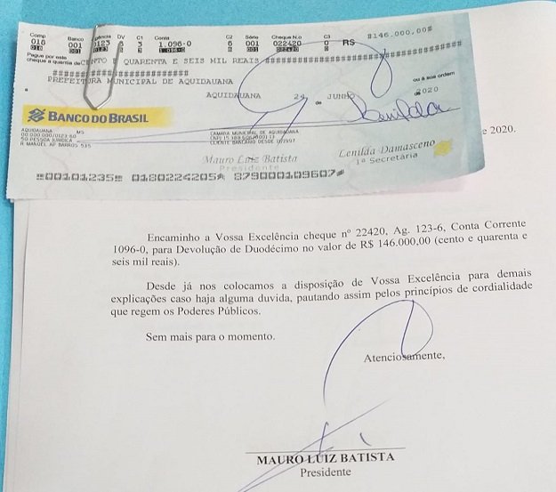 Com esta ação, segundo informou o presidente do Legislativo vereador Mauro do Atlântico (MDB) está confirmada a devolução de aproximadamente 830 mil reais, recursos que foram aplicados pelo prefeito de Aquidauana Odilon Ribeiro, na Saúde, na Educação e no Esporte.
