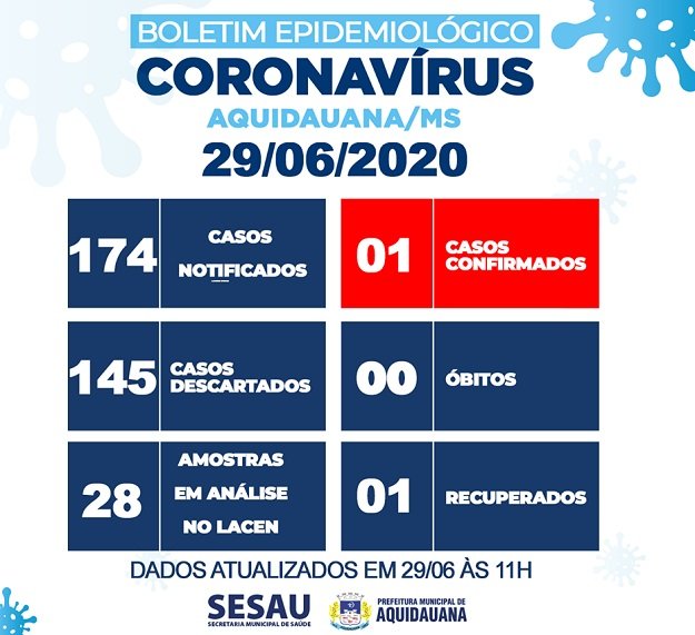 Nesta segunda-feira, o Laboratório Central de Saúde Pública (Lacen) não divulgou novos resultados de exames das 28 amostras de Aquidauana cadastradas para teste de coronavírus. Aquidauana permanece sem novos casos confirmados de coronavírus.