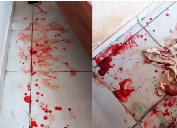 Sangue ficou espalhado por onde o cachorro passou (Foto: arquivo pessoal)