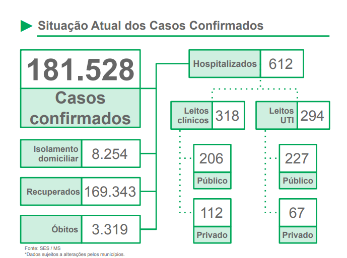A doença levou a óbito 13 pessoas em oito cidades. Foram 6 perdas em Campo Grande e uma nas cidades de Terenos, Bela Vista, Sete Quedas, Bodoquena, Vicentina, Coxim e Dourados.