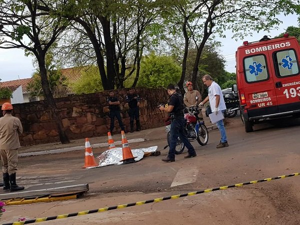 Acidente com vítima fatal nesta manhã de terça-feira na Rua dos Ferroviários com Joaquim Nabuco no bairro Alto em Aquidauana.