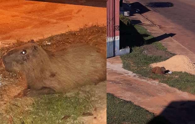 Capivara é atropelada em Aquidauana e passa madrugada a espera de resgate