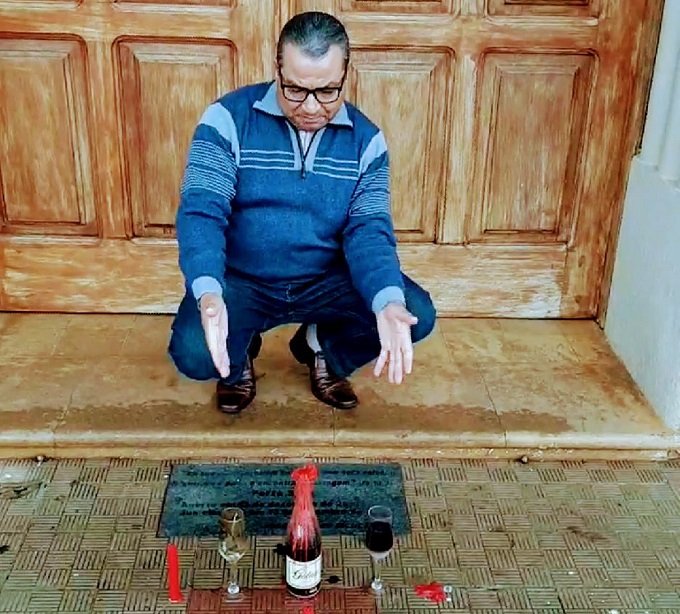 Pontualmente às 7h15, desde que começaram as restrições impostas pela pandemia, o padre Paulo do Nascimento Souza, fez a live do dia de orações e conversa com fieis de Aquidauana. Logo que encerrou, recebeu ligação pedindo que fosse até a frente da igreja. Se deparou com uma oferenda feito com taças de cristais, velas e garrafa de vinho.