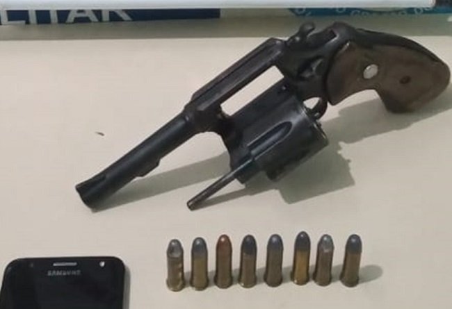 Na abordagem, nada foi encontrado em desfavor do condutor (homem de 34 anos de idade), porém, dadas as circunstâncias apresentadas, os policiais militares resolveram fazer uma busca completa dentro do carro e encontraram um revólver calibre .38 com 06 (seis) munições e outras 02 (duas) guardadas no porta-luvas.