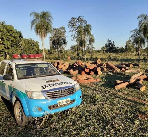 Os policiais apreenderam 21 m³ de madeira em toras das espécies angico, faveiro, pau-terra e roxinho, que estavam armazenados na propriedade, sem o Documento de Origem Florestal (DOF), que é o documento do órgão ambiental para se ter em depósito, beneficiar ou transportar qualquer produto florestal.