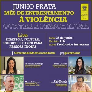Encontro online para debater “Direitos, cultura, esporte e lazer para pessoas idosas”, tem a Participação da Fundação de Desporto e Lazer de Mato Grosso do Sul (Fundesporte). O diretor-presidente da fundação, Marcelo Ferreira Miranda, participará do debate digital, promovido pela subsecretária estadual de Políticas Públicas para as Mulheres, Luciana Azambuja Roca. A live integra a programação da campanha Junho Prata, mês dedicado ao combate à violência contra a pessoa idosa.