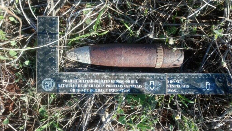O artefato estava jogado no terreno. De acordo com informações do site Enfoque MS, a PM (Polícia Militar) foi acionada, isolou a área e acionou o Bope. A equipe identificou o artefato como projétil de munição de canhão de 70 milímetros.