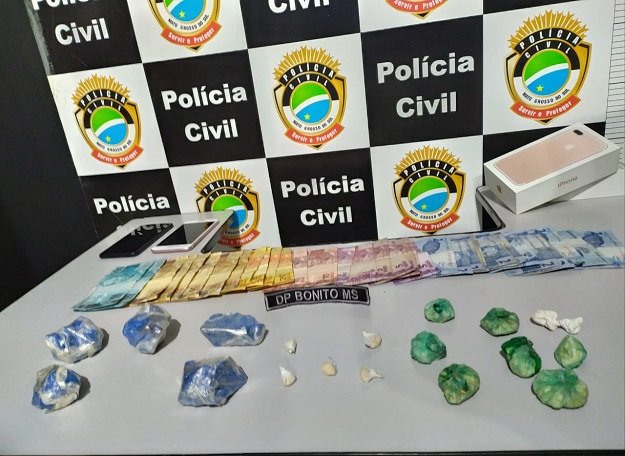 A Polícia Civil de Bonito prendeu em flagrante, no fim desta quarta-feira (01), um rapaz de 21 anos por tráfico de drogas enquanto investigava um crime de furto de celular envolvendo um usuário, que é cliente do traficante preso. O suspeito de tráfico já era alvo de investigação anterior da Polícia Civil de Bonito e o delegado titular da unidade, Gustavo Henriques Barros, já havia representado pela busca e apreensão em seus endereços residenciais.