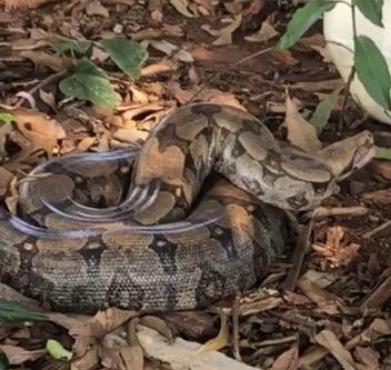Policiais Militares Ambientais de Campo Grande capturaram uma serpente da espécie Boa constrictor (jiboia) ontem (7). Funcionários do Aquário do Pantanal telefonaram para a PMA, informando sobre a presença da serpente em alguns resíduos de construção dispendidos junto à obra.