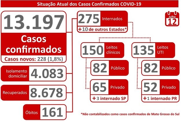 No Boletim Estadual Epidemiológico de hoje, 12, aponta 01 caso positivo confirmado para Aquidauana, que ainda está em investigação pela Vigilância Estadual e Municipal, para identificar a origem e onde está essa pessoa positiva de Covid-19, pois ela não foi detectado no municipio de Aquidauana.