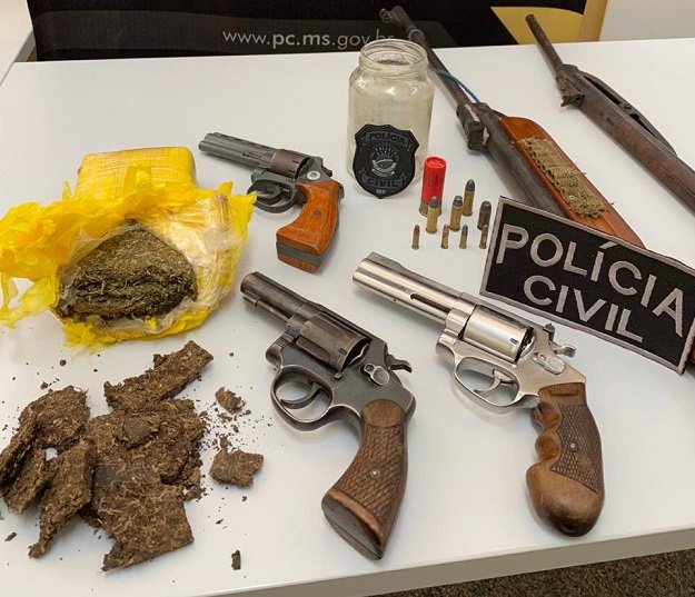 Polícia Civil apreende quatro armas de fogo e drogas, e prende suspeitos