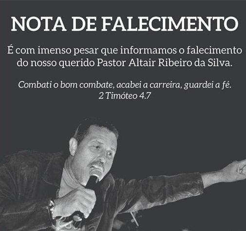 Eram 21 horas de ontem, quinta-feira, 23 de julho, quando a página da Primeira Igreja Batista de Corumbá (PIB-MS) no Facebook, alterou a foto da capa em homenagem a Altair Ribeiro da Silva, de 55 anos, que pastoreou a unidade por 18 anos com maestria.
