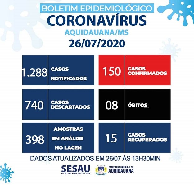 O boletim municipal de Aquidauana é diário e reflete os dados de Aquidauana atualizados.