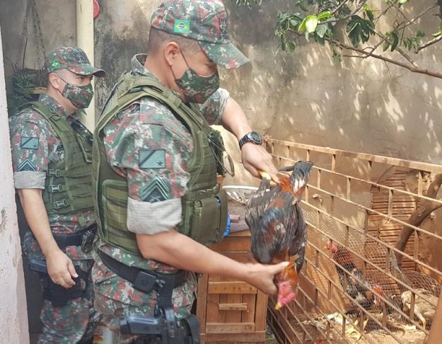 Campo Grande (MS) – Policiais Militares Ambientais de Campo Grande e o IBAMA receberam denúncias, versando sobre uma residência onde funcionaria uma rinha de galos no bairro Talismã e foram ao local ontem (13) no final da manhã. No momento da chegada dos Policiais Militares Ambientais e fiscais do IBAMA, um pedreiro de 41 anos identificou-se como proprietário. Ele afirmou que só criava os galos e que não funcionava rinha.