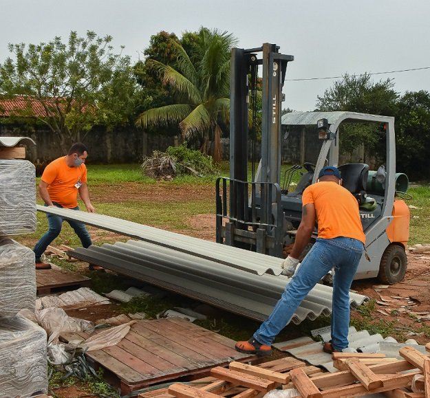 Com recursos próprios do município, a Prefeitura de Aquidauana adquiriu telhas de eternit 3.66 e estão sendo comprados tijolos, areia, cimento e telhas de concreto.