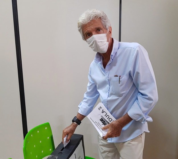 Presidente do MDB, Archibald Joseph Macintyre (Mac) no momento do voto