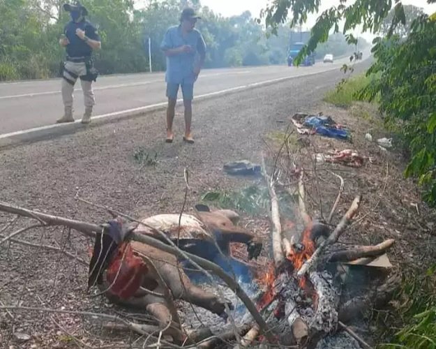 A PRF foi acionada logo em seguida, porém ao chegarem ao local, os policiais encontraram o viajante, de 38 anos, tentando fazer um "churrasco" com a carne do animal no acostamento da rodovia. O andarilho usou troncos de árvores para fazer o fogo e já havia até começado a preparar o almoço improvisado.