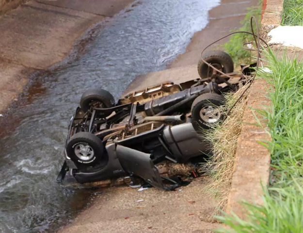 Em perseguição, caminhonete cai em córrego e motorista morre com cinco tiros