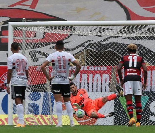 Apesar do elástico placar, o roteiro da partida poderia ter rumo diferente, caso Bruno Henrique e Pedro tivessem convertido as penalidades a favor dos rubro-negros. Nas duas ocasiões, quem brilhou foi o goleiro Tiago Volpi. Os donos da casa saíram na frente do marcador, logo aos 5 minutos da primeira etapa com Pedro. O São Paulo reagiu com belo gol de Tchê Tchê aos 17. A virada aconteceria com Brenner aos 45.