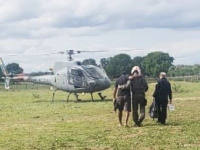 Em uma área de difícil acesso, um homem foi resgatado na tarde do último sábado (5) por meio de helicóptero após ser ferroado por uma arraia em Mato Grosso do Sul. A vítima é um militar de 44 anos e o caso aconteceu na Barra do São Lourenço, região do Pantanal.