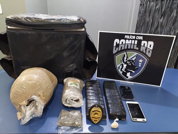 Em seguida, parte da equipe diligenciou na residência de uma das irmãs e, no local, foram encontrados dois tabletes de maconha, pesando 1,8kg, além de três porções de skunk, pesando 3,397kg, os quais estavam dentro de uma caixa de isopor.