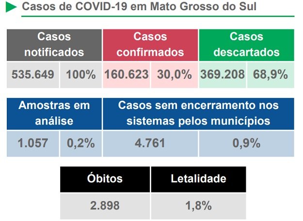 Os cinco municípios que apresentaram mais casos são: Campo Grande com +260; Corumbá +66; Dourados +60; Três Lagoas +33 e Ponta Porã +32.