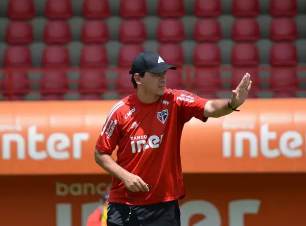 Técnico Fernando Diniz comanda treino no São Paulo (Foto: Divulgação)