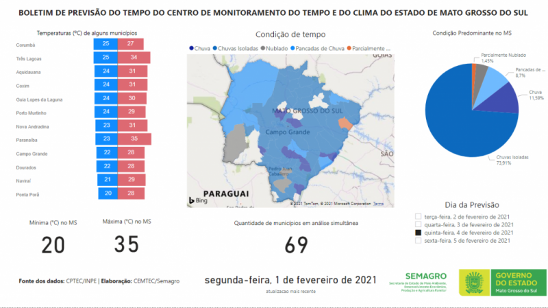 As temperaturas poderão variar entre de 20°C a 35°C, com a área do bolsão podendo ser a mais quente do dia.