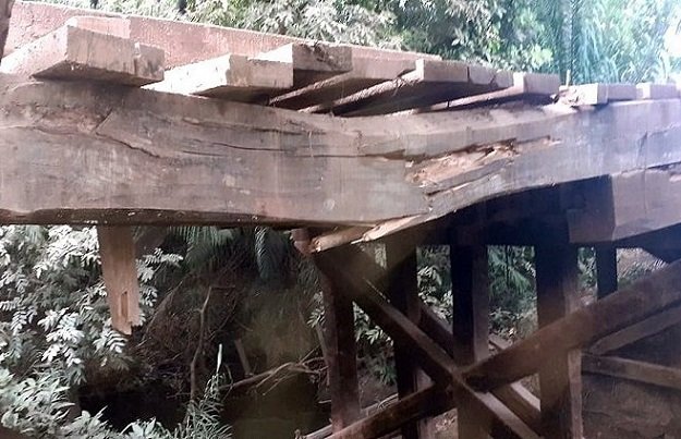 No trecho que compreende o cruzamento da serra, uma ponte de madeira sobre córrego foi danificada na passagem de um caminhão, com a quebra de seis vigas.