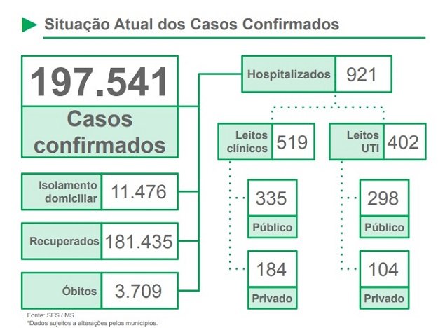 Com mais 1.447 novos casos, MS soma a triste marca de 632.502 casos notificados de Covid-19 e 3.709 mortes. Somente nas últimas 24 horas, 42 pessoas não conseguiram resistir à gravidade da doença.