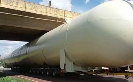 Carreta transportando tanque de 160 toneladas com destino a Ponta Porã, a 316 km de Campo Grande, passou raspando por viaduto na BR-487. O flagrante foi feito nesta semana, entre os municípios de Campo Mourão e Luiziânia, no Paraná.