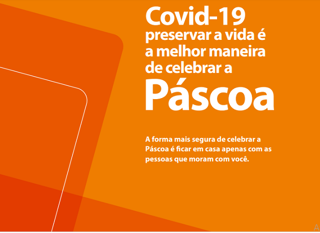 A cartilha Covid-19 – preservar a vida é a melhor maneira de celebrar a Páscoa está disponível no formato digital. A principal mensagem é: a forma mais segura de celebrar a Páscoa é ficar em casa, apenas com as pessoas que moram com você. Nenhuma medida é capaz de impedir totalmente a transmissão da Covid-19.
