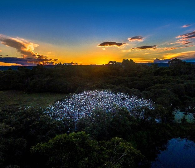 O registro do que ele chamou de florada das garças foi uma ação do biólogo Luiz Felipe Mendes, de 27 anos, que reside no município de Dois Irmãos do Buriti e teve o primeiro contado ao passar pela estrada parque MS 450 que liga a BR 262 aos distritos de Palmeiras, Piraputanga, Camisão e Aquidauana.