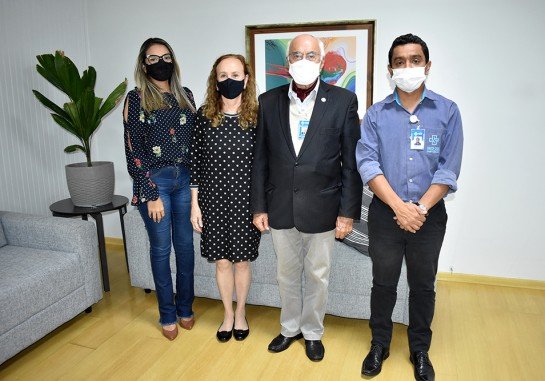 Estiveram presente para assinatura do Termo de Cooperação CEPA/SANTACASA, o presidente da Instituição, Heitor Rodrigues Freire, gerente de Gestão de Pessoas, Gabriel Cruz e as representantes do TJMS.
