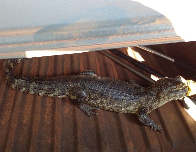 Uma equipe foi ao local e capturou o jacaré de cerca 1,50 metro com uso de cambões e o colocou em uma caixa de contenção, o animal aparentemente apresentava ser vítima de maus tratos pois foi encontrado amordaçado e com uma das patas amputadas.