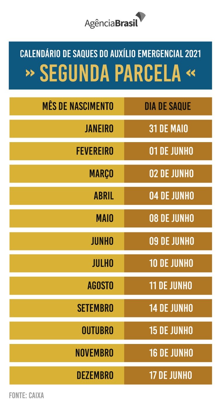 Trabalhadores informais e inscritos no Cadastro Único para Programas Sociais do Governo Federal (CadÚnico) nascidos em março podem sacar, a partir de hoje (2) a segunda parcela do auxílio emergencial 2021. O dinheiro havia sido depositado nas contas poupança digitais da Caixa Econômica Federal em 19 de maio.
