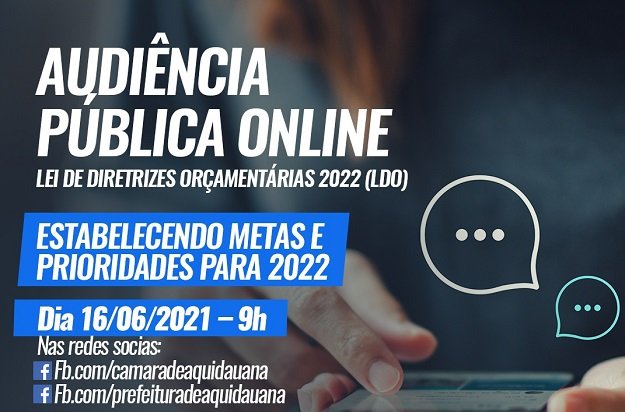 Atenção, cidadão aquidauanense! Participe da audiência pública online para definir as metas e prioridades para Aquidauana no ano de 2022.