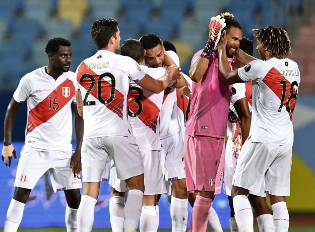 O Peru saiu na frente aos 16 minutos do primeiro tempo. Sergio Peña aproveitou o rebote de um chute de fora da área do também meia Yoshimar Yotún (ex-Vasco) que parou na trave, e mandou para as redes. Na etapa final, aos cinco minutos, o atacante Miguel Borja entrou na área e foi derrubado pelo goleiro Pedro Gallese. O próprio Borja - vinculado ao Palmeiras - converteu a penalidade e deixou tudo igual.