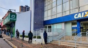 Fila em agência da Caixa para recebimento do auxílio emergencial (Foto: EDUARDO MATYSIAK/FUTURA PRESS)