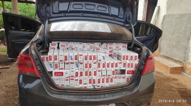 Foi realizada busca, porém o condutor não foi localizado, no veículo havia 10 mil maços de cigarros contrabandeados.