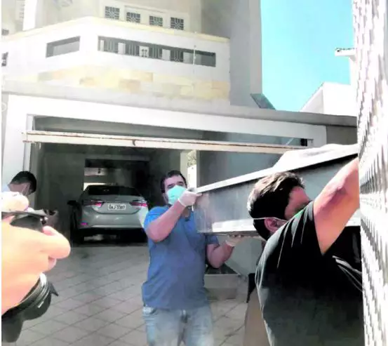 Caixão com um dos corpos é retirado da casa. (Foto: Repodução Facebook)