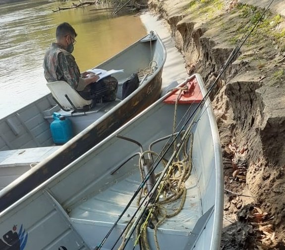 Policiais Militares Ambientais de Miranda realizavam fiscalização ontem (9), no rio Miranda e autuaram dois pescadores por pesca ilegal. Os Policiais fiscalizaram os pescadores, que estavam em uma embarcação no rio Miranda, próximo ao local denominado “Poço João Nunes” e verificaram que eles praticavam pesca sem a licença ambiental estadual.