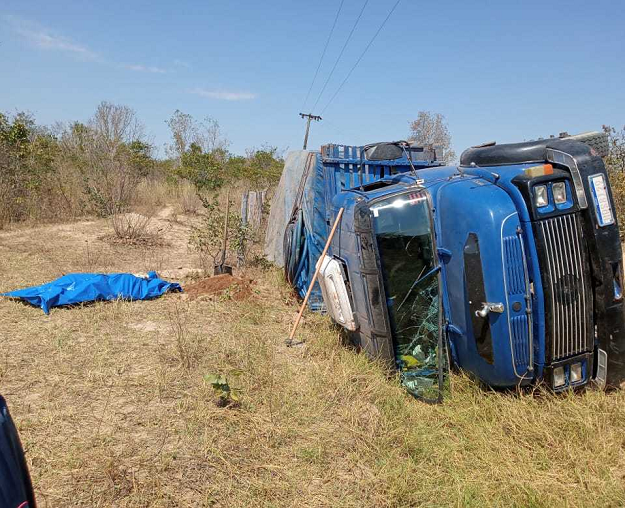 Vítima estava na carroceria do veículo; caminhão tombou em estrada vicinal