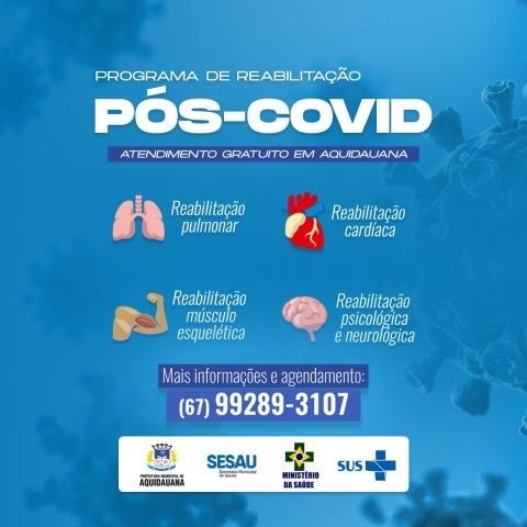A Secretaria Municipal de Saúde de Aquidauana disponibiliza uma equipe multiprofissional, composta por médico, fisioterapeuta, nutricionista, psicólogo, fonoaudiólogo, profissional de educação física, que realizam atendimento para pacientes com sequelas motoras, respiratórias ou emocionais causadas pela síndrome pós-covid.