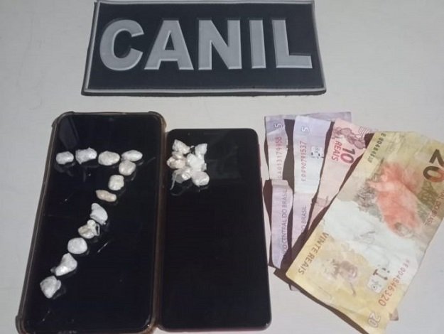 Ao ser abordado, o rapaz repassou algo para o menor de 17 anos e tentou empreender fuga jogando outro pacote, mas foi contido pela equipe. Neste pacote tinha aproximadamente 18 paradinhas de pasta base de cocaína. Com o suspeito também foi localizado dinheiro em espécie, dois aparelhos celular, além de outra trouxinha de pasta base e uma de maconha.