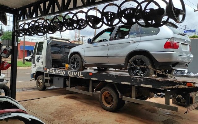 Após o recebimento de uma denúncia anônima de que no desmanche havia um veículo com restrição criminal, uma equipe da DEFURV foi até o local e constatou que no pátio da loja tinha uma BMW, modelo X5 na cor prata, sem placas, com restrição de roubo/furto, no Estado de São Paulo.
