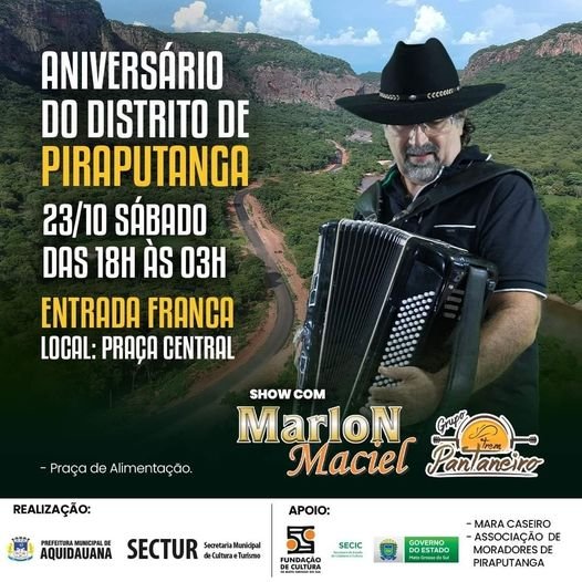 Bailão com Marlon Maciel & banda Trem Pantaneiro, com entrda franca. Vai ter praça de alimentação - Chama os amigos e a família e bora lá comemorar!