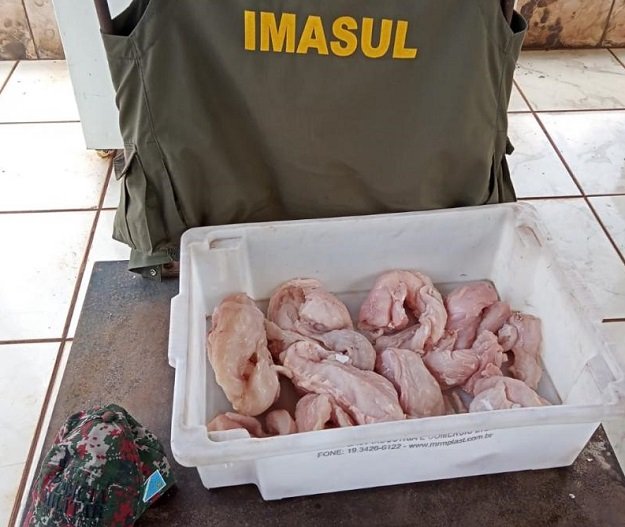 Policiais Militares Ambientais do Grupamento do Tauarussu, no município de Anastácio e fiscais do Instituto de Meio Ambiente de Mato Grosso do Sul (Imasul), que trabalham na operação piracema, realizavam fiscalização ambiental ontem (12) na rodovia BR 262 e abordaram um veículo marca Chevrolet S10 e encontraram 8 kg de carne de animal silvestre da espécie jacaré transportada ilegalmente.