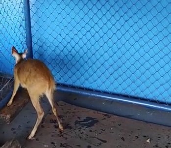 Um animal silvestre da espécie Mazama americana (veado-mateiro) foi capturado no final da manhã de hoje (23), por Policiais Militares Ambientais de Cassilândia.