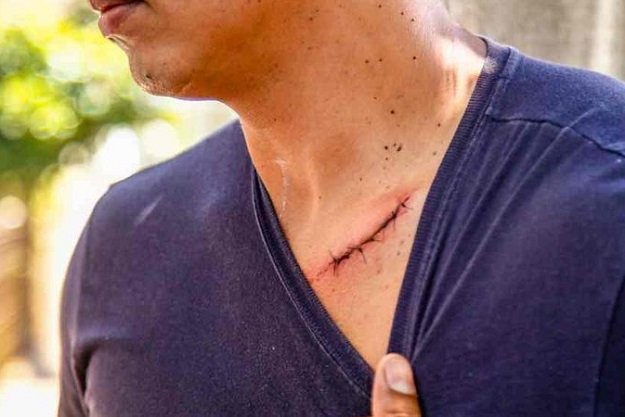 Foi então que a testemunha tentou intervir e disse: “Você nunca fez autoescola não? A pessoa está aprendendo”. O motorista se irritou ainda mais e teve início uma discussão. O autor foi até o Uno e pegou um facão, entrando em luta corporal com a vítima, que conseguiu desviar de um golpe, mas acabou atingida no peito, perto do pescoço.